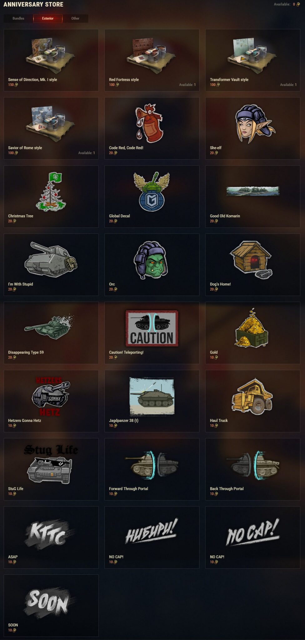 WG nám připravilo k 10. výročí pěknou snůšku 2D stylů. Budete si je moct pořídit za narozeninové mince v narozeninovém obchodě.