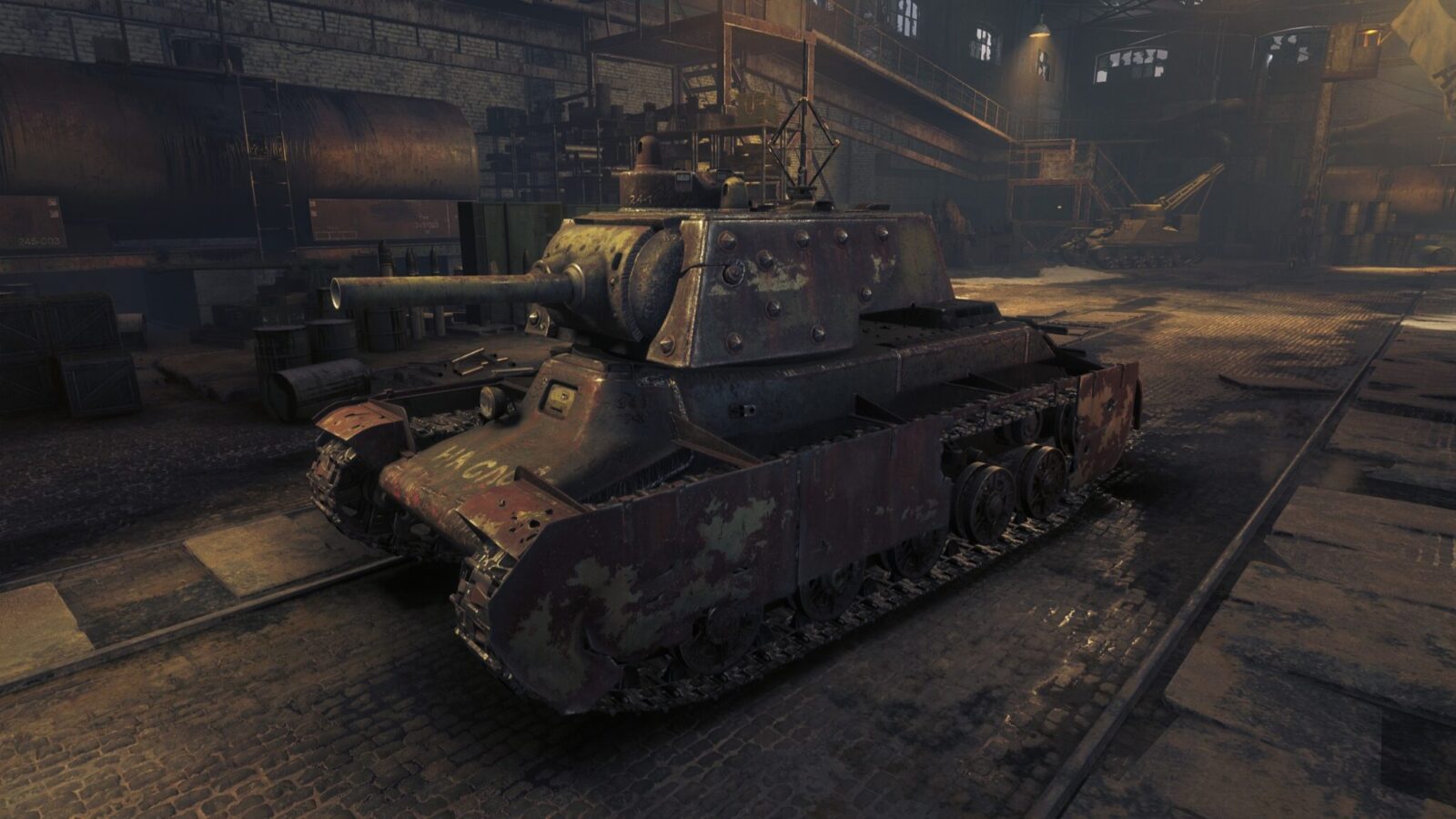 – Tento tank, sestavený z odepsaných částí a součástí z různých továren na výrobu tanků, představuje vážnou hrozbu pro jakékoli nepřátelské vozidlo. Přímo na bojišti lze vytvořit skutečné monstrum. Hoďte plány a technickou dokumentaci do větru.