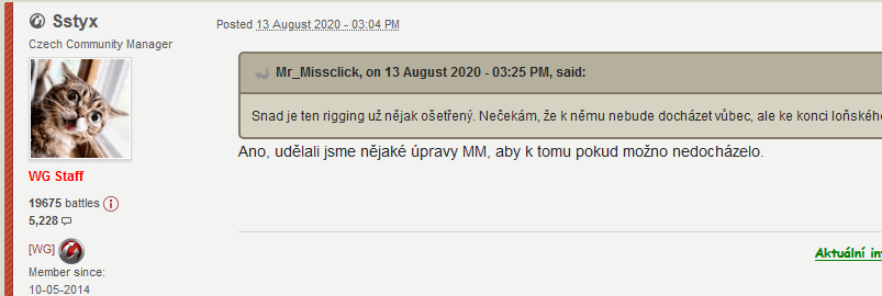 Bohužel, ani neověřené zákulisní zprávy o úpravách matchmakeru, o tom, že do té samé bitvy Ocelového Lovce nebudou mít přístup hráči stejného klanu, nebo hráči mající se ve friend listu nebo spolu měli někdy soukromou konverzaci, se ukázaly jako nepravdivé. Mnozí z nás se o tom přesvědčili. Mnozí z nás na to upozorňovali, snažili se s tímhle podvodem něco udělat, respektive dokopat WarGaming, aby s tím něco udělali oni. Bohužel se naše hlasy nesetkaly s odezvou. A stejně dopadli hráči v ruskojazyčném regionu. Tam ovšem tato záležitost nabrala na síle kvůli jedné komunitní akci.