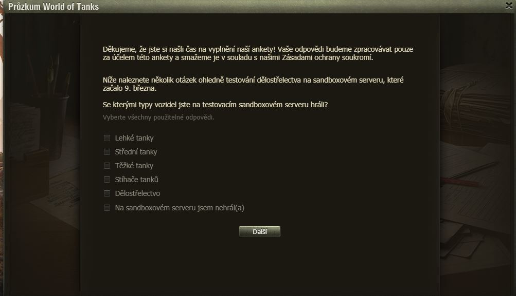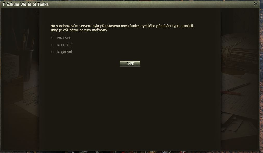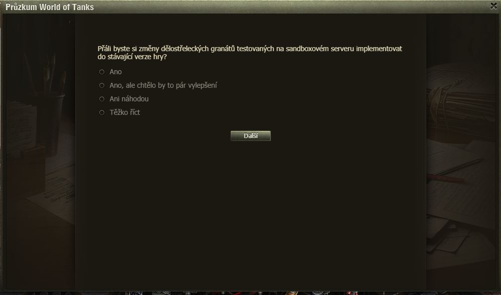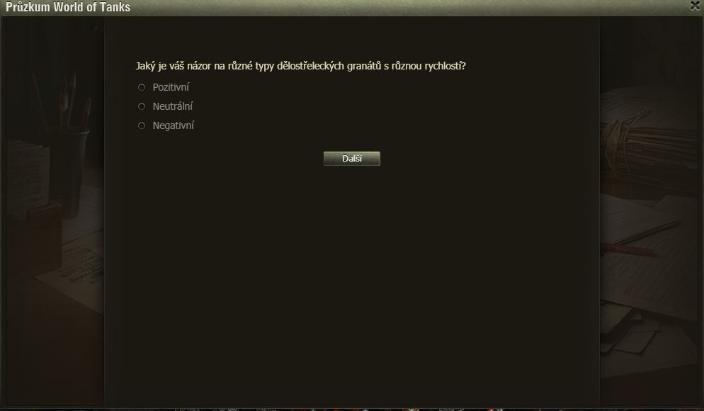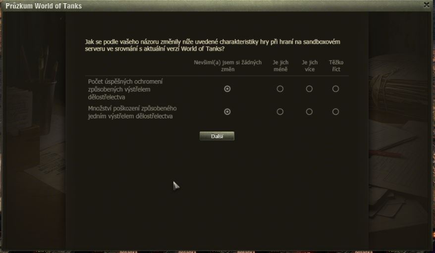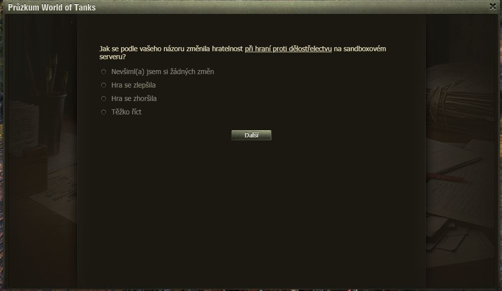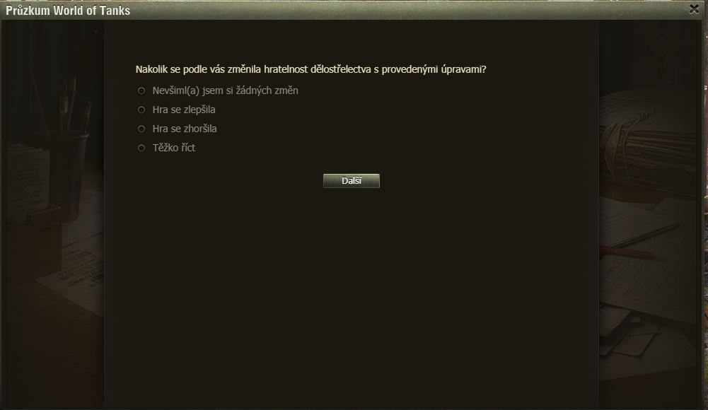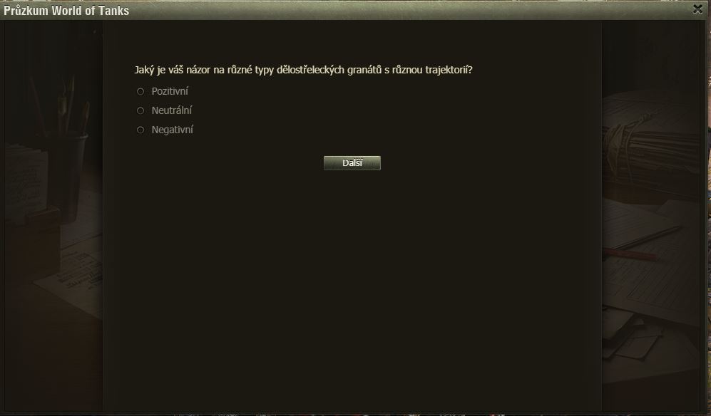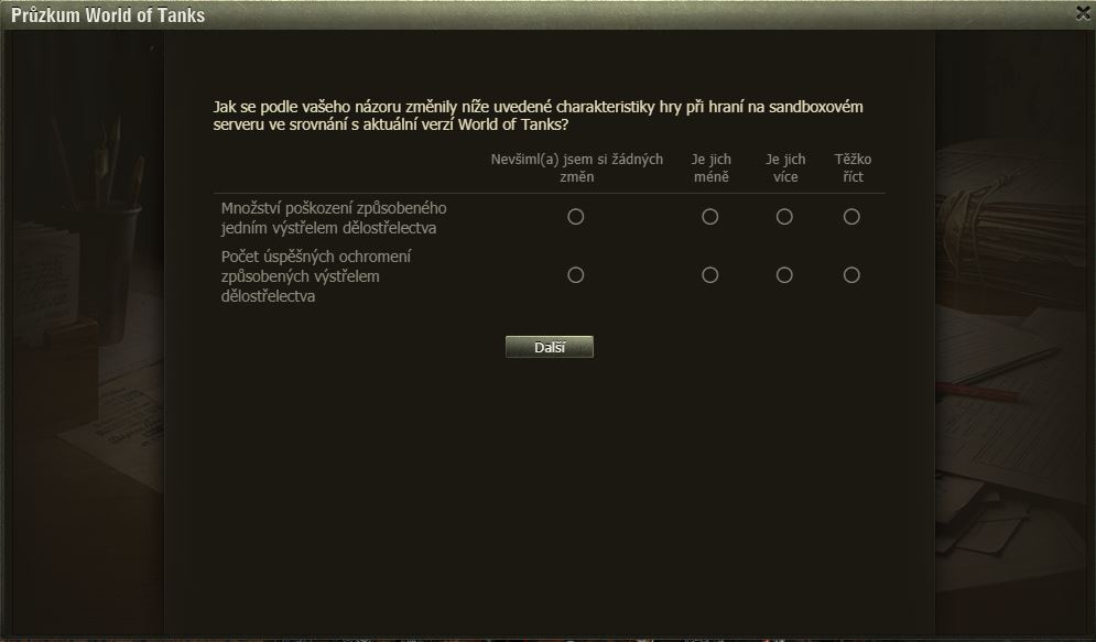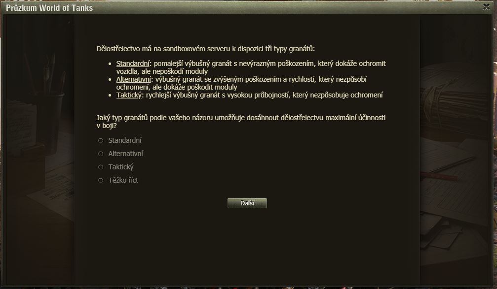 Dnes pro pořádek zveřejňujeme zatím poslední dotazník k SB – artilérie.