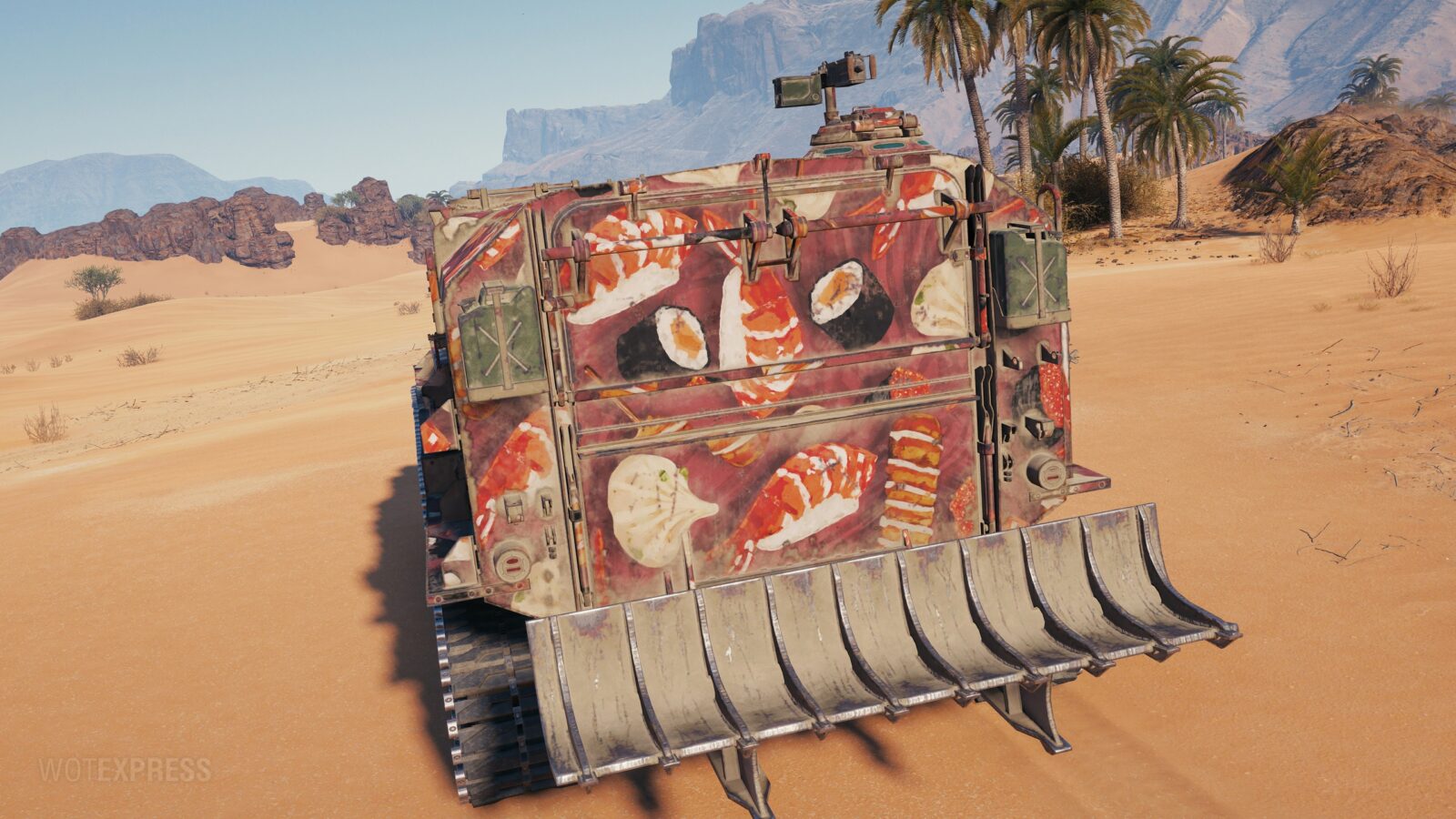 V chystané aktualizaci 1.12.1 byla nalezena celá sada 2D kamuflážních stylů s názvem „Východní kuchyně“. Název myslím říká o obsahu vše, takže nám už jen zbývá dodat hlášku „Válka je válka, ale oběd prooběhne podle plánu.“, která se ke stylu pojí, a uvést, že prozatímní technická cena za jeden kus je 50 goldů, patří mezi styly nehistorické, jde použít pro všechny národy a tiery a nejde na něj použít postupové obtisky. Nevíme, zda a při jaké příležitosti půjde styl získat na EU serveru.