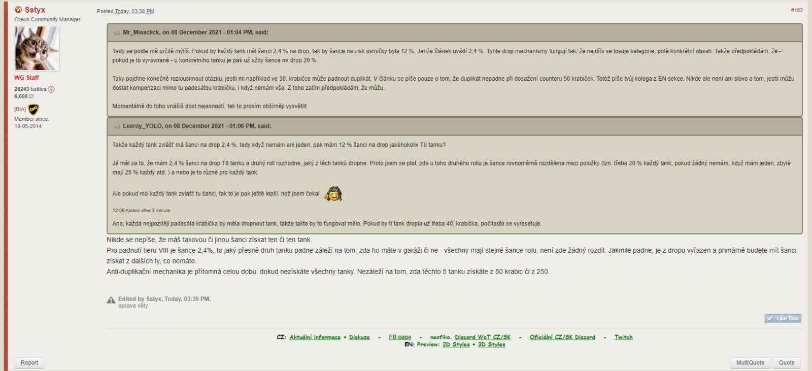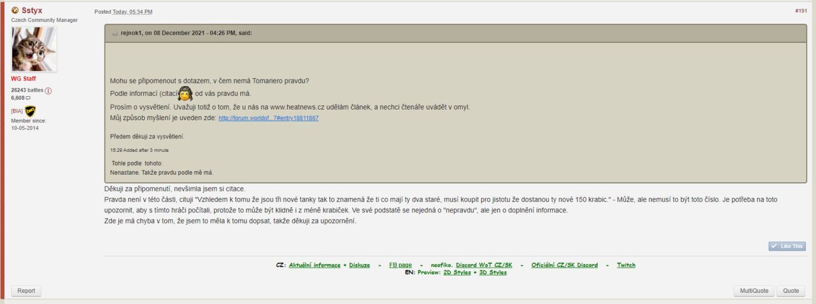 V té souvislosti, vás chceme požádat o vyplnění krátkého dotazníku ke kompenzacím. Dotazník otevřete kliknutím zde. Co chceme zjistit? Chceme zjistit, za jaké tanky osmé úrovně jste získali kompenzaci ve zlatě. Nechceme podporovat spekulace, které jsme zaslechli, proto se snažíme získat data, abychom mohli říct, že se opravdu jedná o spekulace.