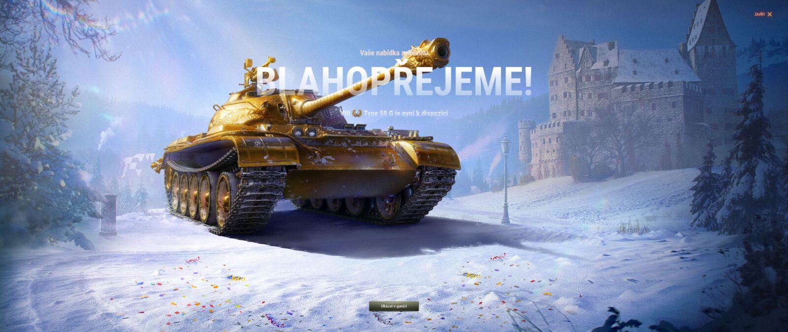 Děkujeme našemu pravidelnému čtenáři old_rawen, který nám poskytl informaci o nákupu tanků. Na základě této informace upravujeme zlaťáky potřebné na nákup Type 59 G. V tabulce jsme uvedli, že na nákup Typa bylo potřeba minimálně 43 288 zlatých. Old_rawen však nabídl „jen“ 37 601 zlatých a tank získal. Tento nákup je potvrzen screeny ze hry. Bohužel WG oficiální informace nepodává a myslím, že se není čemu divit.