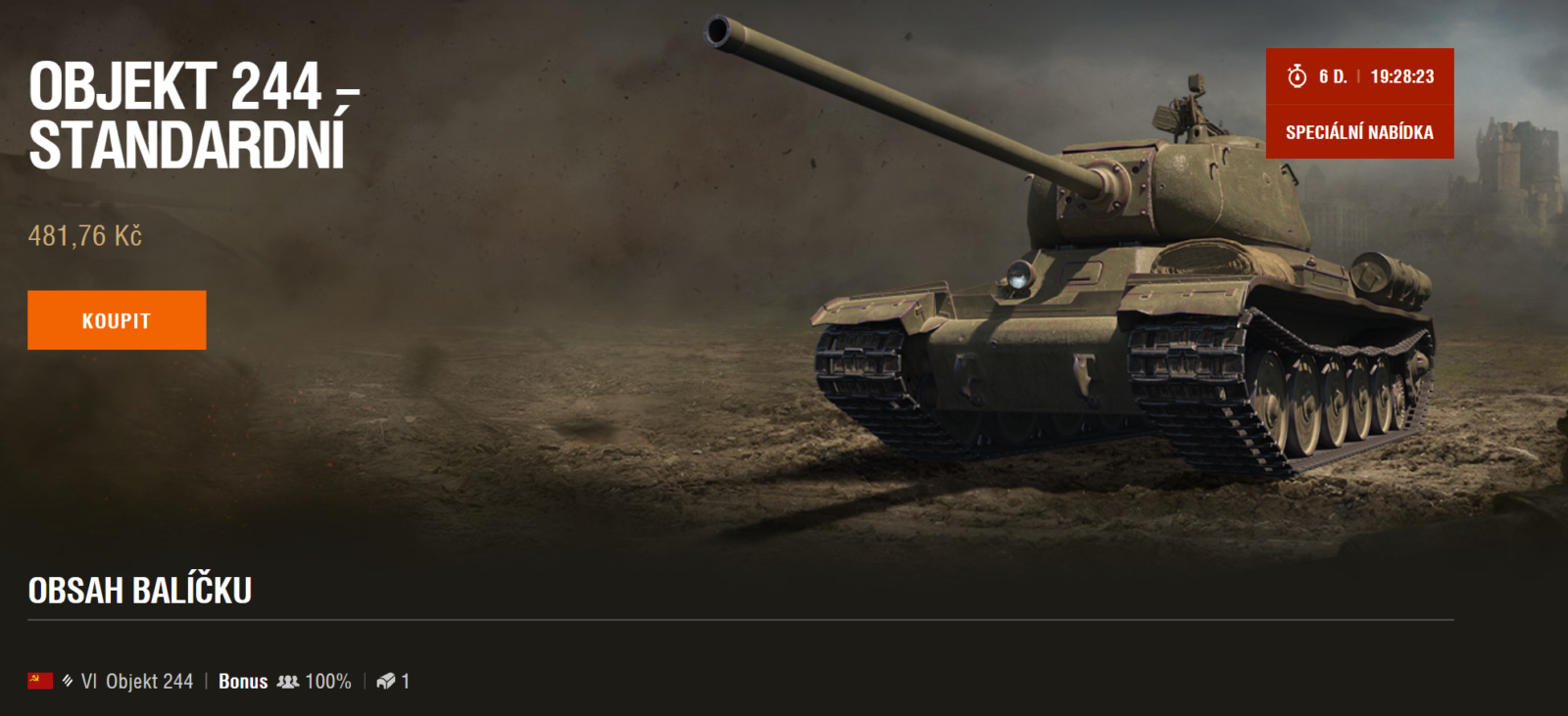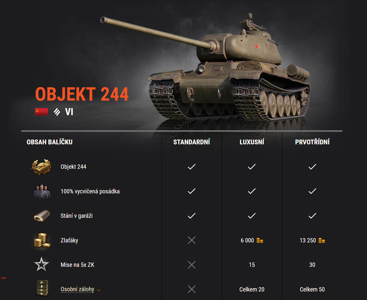 V obchodě WG se objevil tank Objekt 244, který je zároveň možno získat i za plnění misí z TWITCH kanálu. Jak jsem psal, tank bych rád získal a už mi chybí jen 7 žetonů, takže snad se mi to příští týden podaří. Cena tanku v obchodě je stanovena na 480 Kč. Jestli je to moc nebo málo, nechám na vás.
