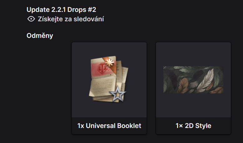A ještě jedno připomenutí, které se snad může hodit. Opět až do zítřka je možnost získat za sledování vybraných kanálů nějaké drobné dměny univerzální knihu posádky a 2D styl. Takže pokud můžete nechat zapnutý počítač, jděte do toho.